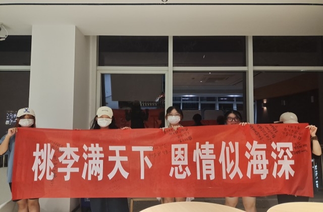 同学们在横幅上写下自己想对老师们说的话,感慨老师的辛苦,感谢老师的辛勤培养,默默奉献,不求回报的精神。每个人的心中都有一轮明月,每个人的心中也都有最难忘的一位恩师。2022年9月10日,当中秋与教师节撞个满怀,我们何其有幸,见证了这两个美好节日的重合,在这一时刻,月辉映照苍穹,不止感恩与团圆。