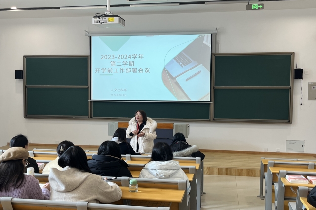 会议最后,人文社科系主任曹安林对2023年人文社科系各项工作进行回顾。她表示,人文社科系去年党建工作、专业及课程内涵建设、招生就业、队伍建设、安全工作等工作都得到有效落实,成绩突出。并强调新学期要围绕“聚力改革创新,深化产教融合,强化内涵建设,提升发展质量”的建设目标,扎实推进系部各项工作的开展,争取新学期取得新突破!