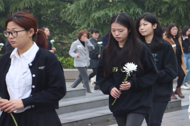 游子山烈士陵园位于风景秀美的高淳区,这里安息着众多在革命斗争中英勇献身的烈士。陵园庄严肃穆,松柏苍翠,墓碑上镌刻着烈士们的英勇事迹和崇高精神。台阶下整齐的队伍,行进至纪念碑前,每一名参与者都怀着对先烈的敬仰之情,共同缅怀那些为国家和民族英勇献身的烈士们。