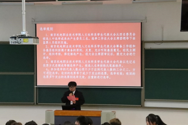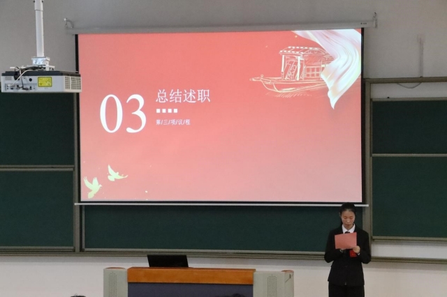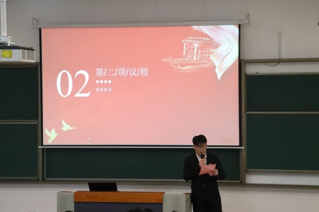 人文社科系团委代表韩贻超宣读了第五届学生代表大会的贺词,向与会代表们表达了热烈的祝贺和美好的祝愿。系学生会主席杨闪悦对过去一学年的学生会工作进行汇报,报告全面回顾了过去一年人文社科系学生会在思想引领、组织建设、创新发展、文体活动、社会实践等方面所取得的显著成绩,同时进行反思与总结,期望学生干部围绕促进学生更好地成长成才的这个中心,服务学校师生这条线,协助老师、带领同学、服务同学,为学校稳定发展做出自己的贡献。