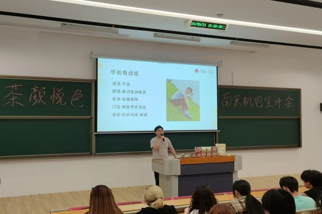 值得一提的是,此次宣讲会特别邀请了两位在茶颜悦色工作的校友——徐阳和于淼。他们分享了自己在茶颜悦色的工作经历和成长历程,为学弟学妹们提供了职业规划和求职建议。他们的经验和故事不仅让同学们对茶颜悦色有了更深入的了解,也激发了他们对未来职业生涯的憧憬和热情。