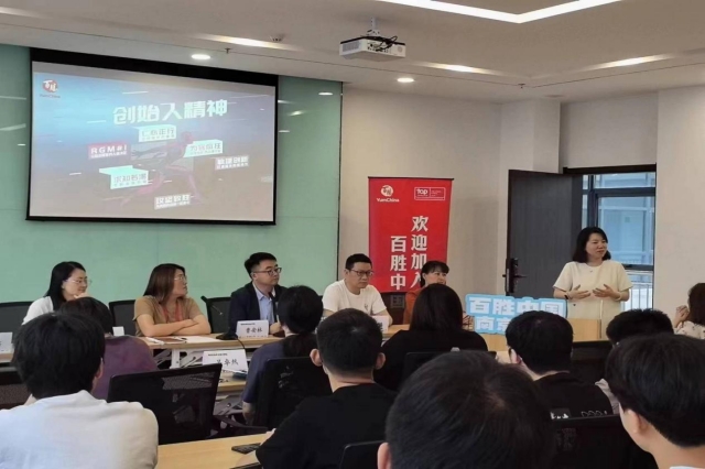 在分享环节,优秀校友敖嘉欣学姐作为南京药科大学餐厅副经理,深情回顾了在百胜中国的成长与收获。她表示,在百胜中国这个平台学到了许多实用的技能和知识,也结识了许多优秀的同事和领导,为她的职业发展奠定了坚实的基础。