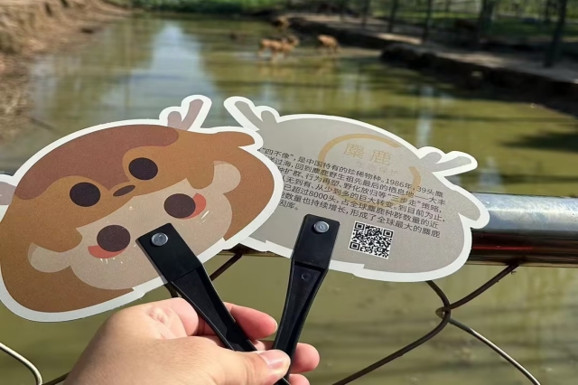 在保护区中,小队成员们在游客填完问卷调查后会给他们发放文创物品和宣传册作为纪念,并进一步询问他们一些相关问题和游览体验等。在收集到大约1000份调查问卷后,小队成员们对其进行了数据分析,收获了很多的信息。人们对于麋鹿的保护工作大多持赞同与支持的态度,同时也为保护区的发展提供了宝贵的发展意见。小队成员们也纷纷表示将把保护麋鹿的理念传递给更多人,以实际行动为保护珍稀动物贡献自己的力量。