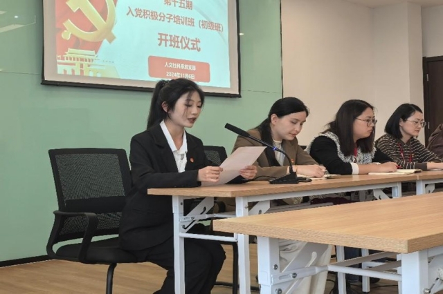 本次开班仪式由人文社科系党支部组织委员吴瑶主持,出席的人员包括人文社科系党支部副书记叶绘、党支部宣传委员赵姗姗、党支部纪律委员王维朋以及党支部青年委员王卓。此外,第十五期入党积极分子初级班全体学员也参加了此次开班仪式。