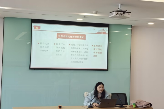 王老师围绕着“以中国式现代化全面推进中华民族伟大复兴”这一主题,分别从中华民族近代以来最伟大的梦想、中国式现代化的中国特色和本质要求等内容进行深入的阐述。她指出,中国式现代化是我们党领导全国各族人民在长期探索和实践中历经千辛万苦、付出巨大代价取得的重大成果,必须倍加珍惜、始终坚持、不断拓展和深化。以中国式现代化全面推进中华民族伟大复兴是一次新的长征,前途光明,任重道远。必须大力弘扬团结奋斗精神,奋力以中国式现代化全面推进中华民族伟大复兴。