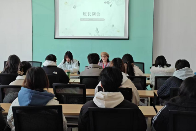 2025年2月24日,人文社科系在弘毅楼702会议室召开2月班长例会。会议由学生会主席葛子涵主持,辅导员梁娟娟老师出席,各班班长共同围绕班级管理展开讨论。