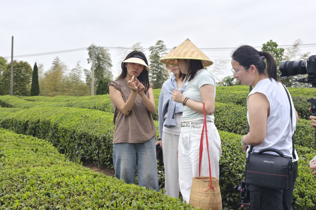 在“域见官塘”茶文化体验站,同学们迎来了一场茶香四溢的文化之旅。在专业茶农的指导下,大家走进茶园,亲手体验采茶的乐趣。一芽一叶间,感受着大自然的馈赠和劳动的美好。随后,制茶车间里,同学们认真学习杀青、揉捻、干燥等制茶工序,见证一片片鲜叶如何在匠人的手中,变成一杯杯香醇的茶叶。品茶环节,同学们轻抿茶汤,感受着茶香在舌尖上的绽放,体会茶文化中蕴含的宁静与深远。与此同时,同学们还拍摄了视频,记录下这一茶韵悠长的体验过程,用影像留住茶文化的细腻与雅致。