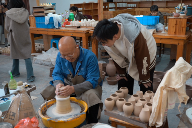 踏入高淳陶瓷博物馆,历史的厚重感扑面而来。馆内陈列的精美陶瓷,跨越千年时光,诉说着高淳陶瓷产业的发展脉络。从原始质朴的陶器,到工艺精湛、造型典雅的瓷器,每一件展品都是历史的见证者。同学们认真聆听讲解,深入了解陶瓷的制作工艺,从泥土的选择、塑形,到烧制过程中的火候把控,再到最后的装饰彩绘,无不惊叹于古人的智慧与技艺。为了更好地传播陶瓷文化,同学们以专业所学,现场进行脚本拍摄,准备用镜头语言,让更多人领略高淳陶瓷的独特魅力。