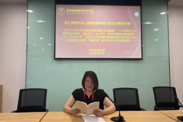 为深入学习贯彻习近平新时代中国特色社会主义思想,切实加强党员思想政治建设,全面提升党员理论水平与党性修养,2025年5月12日,人文社科系党支部读书班组织开展了一场集中学习研讨活动。本次活动由人文社科系主任曹安林领学,人文社科系党支部全体党员老师积极参与,围绕中央八项规定及习近平总书记的重要论述展开深入学习与交流。