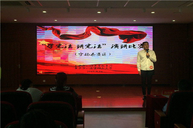 为全面贯彻党的十八大和十八届三中、四中、五中、六中全会精神,深入学习贯彻习近平总书记系列重要讲话精神和治国理政新理念新思想新战略,落实“七五”普法规划,由省教育厅主办、南京师范大学承办的江苏省 “学宪法讲宪法”演讲比赛(宁扬泰片区)选拔赛在仙林校区举行。我院丁啸同学荣获三等奖,特此祝贺!