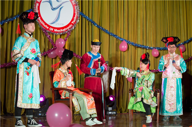 雄赳赳气昂昂,机电男儿当自强,一场震撼人心的武术表演向我们展示了炎黄子孙的武术精魂。而后信息系带来的《rap of china》引得场下一片欢呼。紧接着的《花样跳绳》《街舞表演》更是精彩纷呈。当天各个学生会主席也为在场观众带来了新年礼物,送出了新年祝福。小品《我是男一号》更是引得全场师生捧腹大笑,将气氛推向了高潮。最后吉他弹唱《安河桥》《等你回家》为大家呈现了一场听觉盛宴。