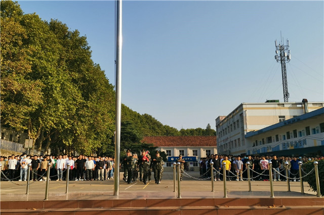 在全体师生的注目下,五星红旗冉冉升起,伴随着国歌,在场师生敬礼仰注,心中一团团热火开始燃烧,为我们伟大祖国的日益繁荣昌盛而自豪。