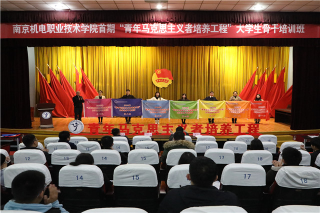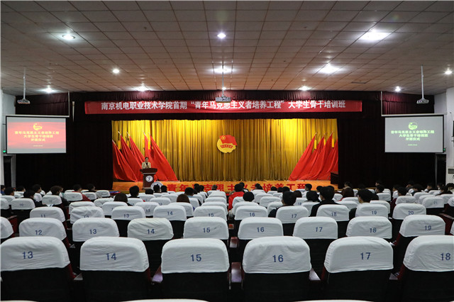 为深入贯彻落实习近平新时代中国特色社会主义思想和党的十九大精神以及《中长期青年发展规划(2016-2025)》《高校思想政治工作质量提升工程实施纲要》《“青年马克思主义者培养工程”实施纲要》等文件精神,推进“青年马克思主义者培养工程”的实施,改进创新面向广大青年学生的思想引领工作方式,着力培养新时代“爱国、励志、求真、力行”的社会主义合格建设者和可靠接班人,依照共青团“凝聚青年、服务大局、当好桥梁、从严治团”的工作格局,在广大青年中着力培养、造就一批经由马克思主义中国化的最新成果武装的年轻学生干部,使他们努力成为共产主义远大理想的坚定信仰者、社会和谐的积极促进者,南京机电职业技术学院首期“青年马克思主义者培养工程”大学生骨干培训班于2020年11月25日晚在报告厅顺利开班,并举行首场报告。星空体育·(中国)官方网站党委委员、副院长赵学洪,纪委副书记、党委工作部部长周启国,学生工作处处长张宝中,党委工作部副部长张玥出席活动。学院各系部团总支书记、青马班各小组指导老师、学生干部骨干、青马班全体成员等80余人参加开班仪式。团委书记唐钰峤主持本次活动。