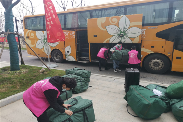 本次返校学生接待工作分为三个接待点,高淳地铁站接待点,团结圩地铁站接待点和校内接待点。三个接待点共同为返校学生前往新校区提供帮助。进校后,由学生志愿者带领,取行李前往宿舍区。学生可以通过扫描二维码查询自己的新宿舍信息。省内学生通过人脸识别后,扫描今日校园二维码,可以进入校园。
