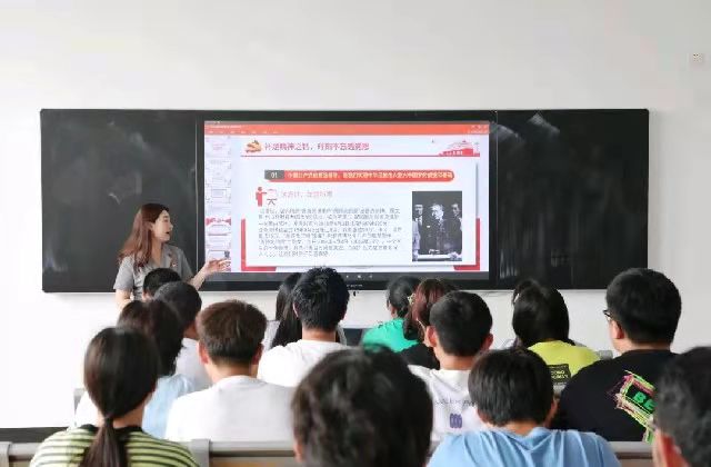 金老师以刘胡兰同志的故事举例,“生的光荣,死的伟大”是对刘胡兰同志一生最好的诠释,她也是唯一一个让三代主席为其题字的英雄。金老师说:我们都是根红苗正的90后,00后,虽不曾见证过那些历史的画面,但可利用新媒体技术,将一个个令人热泪盈眶的瞬间,一个个历史成就的转折点,剪辑拼凑到一起,重现党一路走来的光辉历程。随后,金老师给大家播放了一段视频,带领同学们回顾了党的光辉历程。十月革命的一声炮响,为中国送来了马克思列宁主义。同学们也在课堂上踊跃发言,展开了俄国十月革命对中国影响的激烈讨论。