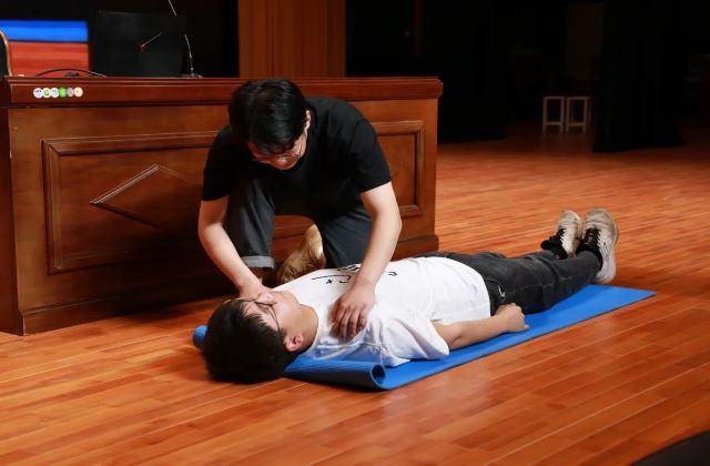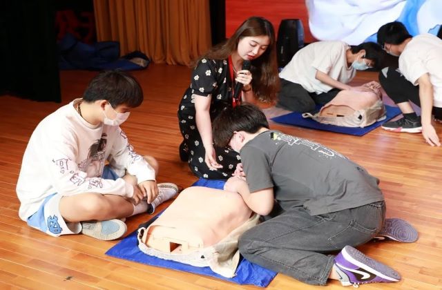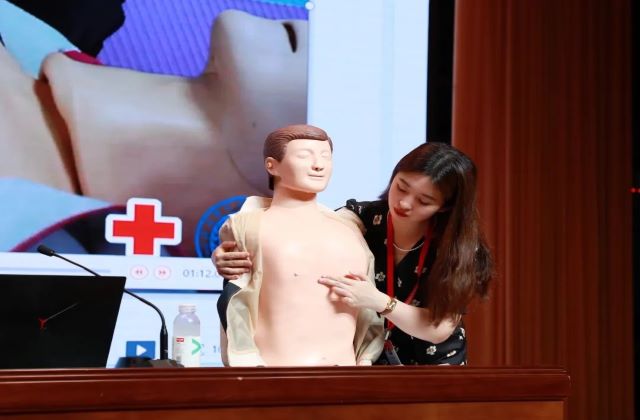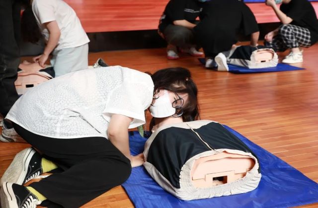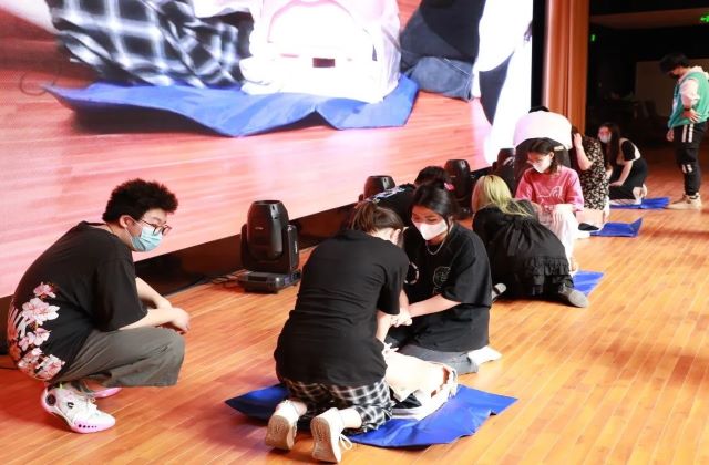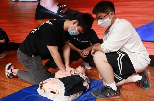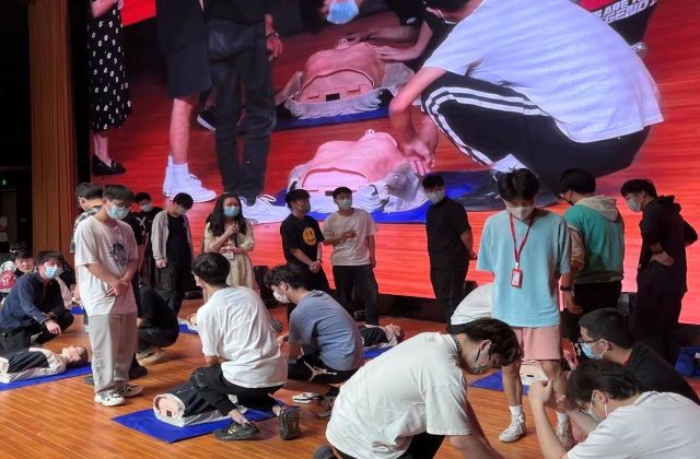 培训会上还采取了现场实操的方式进行培训,两位老师以模拟橡胶人为器具,现场演示了正确的心肺按压和人工呼吸方式,并邀请现场的每一位同学都进行了紧急救助的现场操作,使参加培训的同学较为全面的掌握了心肺复苏现场紧急救援知识和正确处理方法,为应对紧急病患赢得“黄金”救援时间奠定了良好的急救基础,进一步提升了学员紧急救护的能力。
