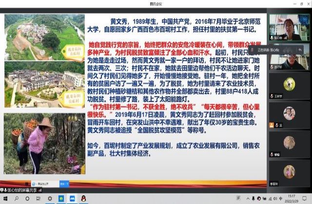 慕雪朝霜,毋改英雄意气。在这个春天,我们缅怀英雄,崇尚英雄,讲述英雄。为此,我系于3月 22日开展“讲述英雄故事”线上主题活动,此次活动由团总支书记林雪主持,党支部书记吴伟萍老师担任特邀嘉宾,共6名同学参加此次演讲活动。