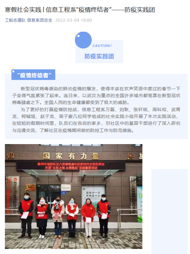寒假社会实践——信息工程系“疫情终结者”——防疫实践团