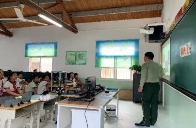 在ppt展示的过程中,我们看到了乡村学生们渴求知识的眼睛, 看到学生们对党历故事与工业机器人知识非常感兴趣,这些都让我们更加坚定了要把乡村科普支教与创客宣传教育坚持走下去的决心。