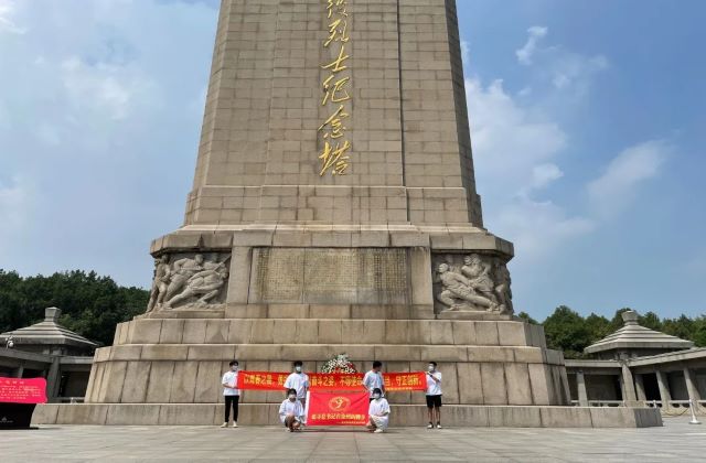 为弘扬红色文化,缅怀革命先烈。实践团队第一站来到了淮海战役烈士纪念塔。