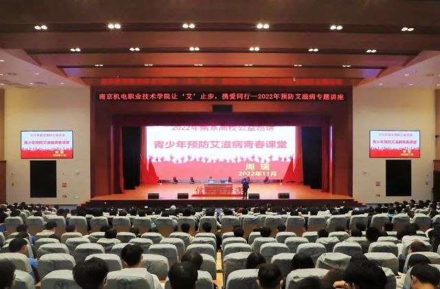 2022年12月1日是第35个世界艾滋病日,为贯彻党中央、国务院决策部署,增强大学生对艾滋病的防卫意识,遏制艾滋病的传播。11月15日,星空体育·(中国)官方网站开展让“艾”止步,携爱同行——2022年预防艾滋病专题讲座。本次讲座邀请到南京市溧水区中医院妇产科主治医师周瑞作为主讲老师向同学们讲解,全校百余名学生参加讲座。