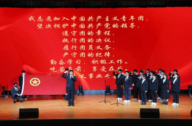 中国共产主义青年团是中国共产党领导的先进青年的群团组织,是广大青年在实践中学习中国特色社会主义和共产主义的学校,是中国共产党的助手和后备军。校团委组织部部长赵广昊同学带领2022年新入团团员作入团宣誓。