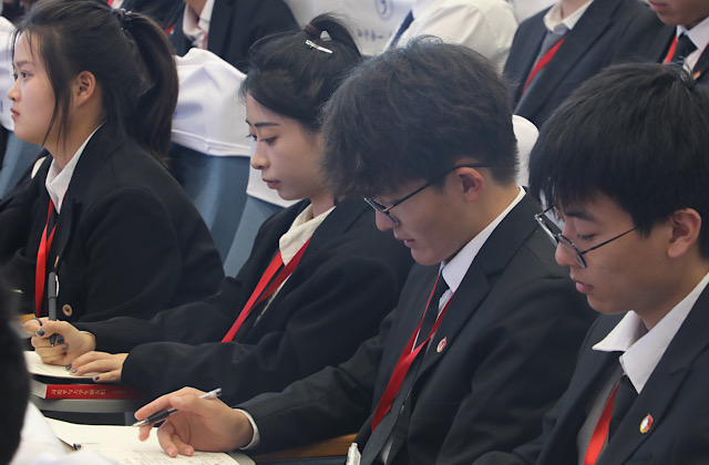 时佳同学作为此次学干培训的新生代表发言她表示,作为新时代青年和学生干部,应该胸怀使命,坚定理想信念精进学业,坚持学生本色倾注热爱,坚守赤诚初心。学生干部们要秉承“知行合一,自强不息”的校训精神,为同学服务为学院服务,挑战自我、磨炼自我的信念脚踏实地地做好自己的本职工作,为构建和谐文明的校园书写新的篇章。