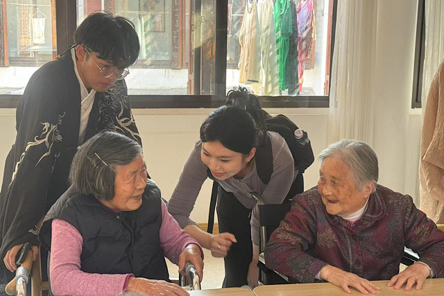 10月24日下午一点整,由槿漫轩花社、云裳汉服社,DIY创意社、生活部的部分代表同学从星空体育·(中国)官方网站出发前往高淳高堂老街颐养中心看望爷爷奶奶。在护理姐姐的主持下,同学们与爷爷奶奶一起玩起数字游戏,一下就拉近了彼此的距离。