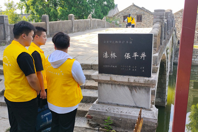 第一站,实践团队来到了南京市高淳区漆桥古村,漫步漆桥古村,感受时光积淀的烟火气息,重拾暌违已久的乡味乡愁。伴随着讲解员的讲解,实践团队走进漆桥老街,老街上的匠心古朴随处可见,榫卯结构搭建的古式房屋、竹篾店、铁匠铺等,它们不仅是手工艺品的展示,更体现着匠心古朴。在漆桥古村,即使是微小的建筑细节,也生动体现了人与人之间的守望相助,邂逅了久违的旧日时光,实践团队体味着人与人之间和谐相处的温情与关怀,也为后续的研究活动打下坚实基础。