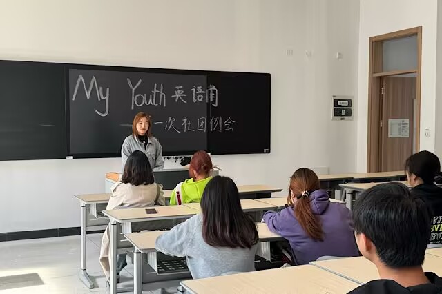 为推动社团内部建设,促进社团长效发展,增进社员间的交流与合作意识,提高社员的参与度和归属感,加强社团与外界的联系,提高社团知名度,为同学们营造一个生动有趣的英语学习环境,My Youth英语角社团于2024年10月25日在博学楼107举办了My Youth英语角第一次社团例会。