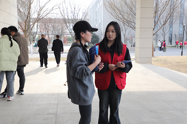 第三批志愿者是现场的“守护者”。他们在人群中忙碌穿梭,维持秩序、解答疑问、清理垃圾,时刻关注着现场的每一个角落。面对考生和家长的各种问题,无论是专业选择的困惑,还是校园生活的好奇,他们都耐心解答,用温暖的微笑和专业的态度,为大家营造了舒适、有序的咨询环境。