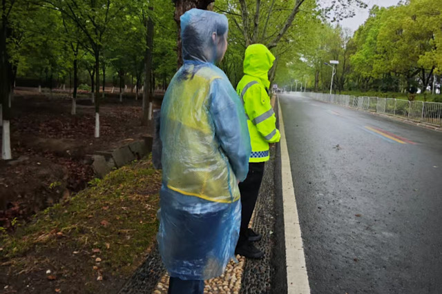 赛道沿线,每隔一段距离就有身着鲜艳志愿服的同学们挺立坚守。于赛前清理赛道上的障碍。保持赛道封闭,如遇摔车等突发状况,及时通知取得救援。即使面对台风的侵袭,也依然用双手扶住赛道两旁的护栏,防止倒塌砸伤高速行驶中的运动员。在终点区域,志愿者们的热情与风雨形成鲜明对比。他们呐喊助威,为冲刺的运动员送上最炽热的欢呼。