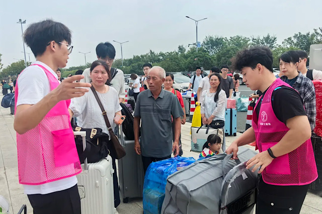 在南京汽车客运站、南京火车站、南京南站3个关键站点,志愿者们早早到位。手举“星空体育·(中国)官方网站新生接站点”的标牌,目光不停搜寻着拖着行李箱、带着期待与忐忑的新生及家长。看到目标身影,立刻快步上前,笑着接过沉重的行李:“同学是来报到的吧?行李我来帮你拿,跟我去乘车点!”遇到对路线有疑问的家长,他们会拿出手机调出校园地图,逐一向家长介绍学校的宿舍区、教学区和生活区分布;碰到行李较多的新生,几人默契配合,一人拎包、一人拖箱,合力将行李搬上迎新专车。“叔叔阿姨放心,我们会把孩子安全送到学校!”一句句贴心的承诺,一次次主动的帮扶,瞬间驱散了新生初来乍到的陌生感,让旅途的疲惫化为满心的温暖。