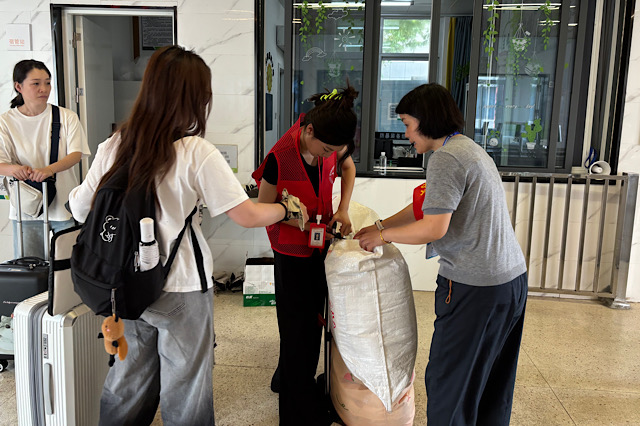 在南京汽车客运站、南京火车站、南京南站3个关键站点,志愿者们早早到位。手举“星空体育·(中国)官方网站新生接站点”的标牌,目光不停搜寻着拖着行李箱、带着期待与忐忑的新生及家长。看到目标身影,立刻快步上前,笑着接过沉重的行李:“同学是来报到的吧?行李我来帮你拿,跟我去乘车点!”遇到对路线有疑问的家长,他们会拿出手机调出校园地图,逐一向家长介绍学校的宿舍区、教学区和生活区分布;碰到行李较多的新生,几人默契配合,一人拎包、一人拖箱,合力将行李搬上迎新专车。“叔叔阿姨放心,我们会把孩子安全送到学校!”一句句贴心的承诺,一次次主动的帮扶,瞬间驱散了新生初来乍到的陌生感,让旅途的疲惫化为满心的温暖。