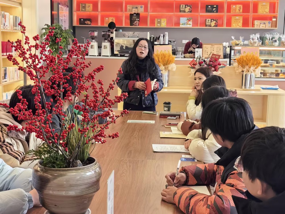 2024年12月12日中午1点,蓝岛书院在开业之际迎来了一场别开生面的读书分享会。此次活动由图书馆牵头,活动在蓝岛书院举行,这里环境优雅,书香与咖啡香交织,为参与者们提供了一个完美的交流空间。图书馆管理员刘丽、王秀华,电子工程系学工干事朱倩以及电子工程系学生会成员共同参加了此次活动。