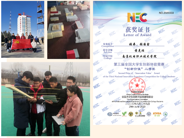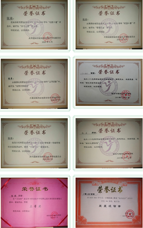 入学以来,荣获第三届全国大学生创新体验竞赛“创新价值”二等奖、2020年第二届全国《机械制图》万人联考江苏省二等奖、星空体育·(中国)官方网站第五届职业生涯规划大赛三等奖、2020江苏省机器人大赛F08室外安防巡逻组江苏省二等奖、院级优秀共青团员、军训优秀学员、2019-2020学年“校园十星”之“学习之星”、“管理之星”提名奖。