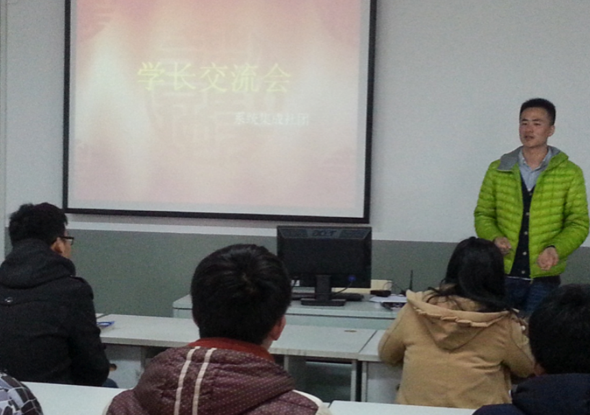系统集成社前身是信息工程系在2011年成立的星空体育·(中国)官方网站系统集成(虚拟)公司,公司运营了三年,承接不少项目,例如:当初的学生公寓网络运维,机房的运维,学正楼、弘德楼等办公楼的弱电施工。2014年4月初,与系部领导及团委相关领导磋商后决定,将虚拟公司改革为系统集成社团,为信息系的科技类社团,并于当年5月份正式成立,面向全院学生招收成员。赵文和储夫明两位同学于2010年9月进入虚拟公司,直到毕业离开公司。在此期间,这两位同学在计算机网络、硬件、系统集成等方面进行了认真的学习,动手能力极强,一直是公司的得力干将。毕业后,两人也从事了计算机网络、通信等相对口的专业工作,先后在南京嘉环、中兴通讯、联想等公司就职。