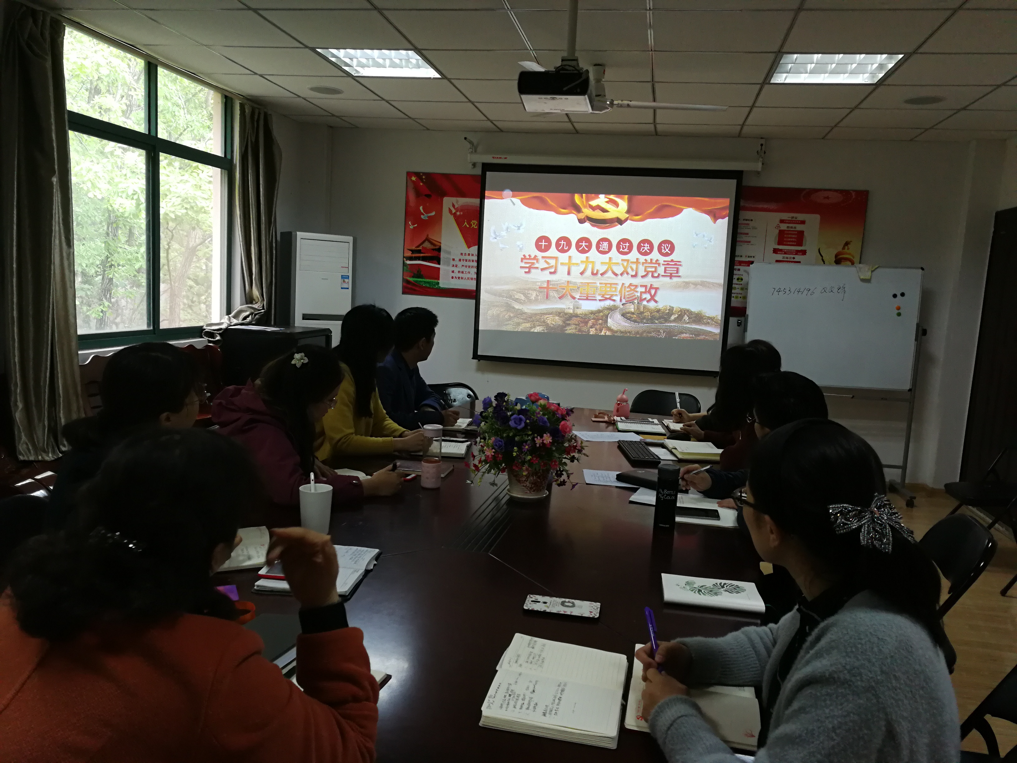 刘娴同志阐明了学习新党章的重要意义,她指出党的十九大通过的党章(修正案),有利于全党更好地学习党章、遵守党章、贯彻党章、维护党章;有利于更好地发挥党章对党的工作和党的建设的指导、规范作用。随后刘娴同志为大家认真解读了党的十九大对党章的十大重要修改,主要内容有:1.习近平新时代中国特色社会主义思想写入党章;2. 中国特色社会主义文化写入党章;3. 实现中华民族伟大复兴的中国梦写入党章;5. 推进国家治理体系和治理能力现代化写入党章;6. 供给侧结构性改革、“绿水青山就是金山银山”写入党章;7. 人类命运共同体、“一带一路”写入党章;8. 全面从严治党、“四个意识”写入党章;9. “党是领导一切的”写入党章;10. 实现巡视全覆盖、推进“两学一做”写入党章。刘娴同志深入浅出地解读了这十大修改的依据和重要意思。她指出,此次党章的修订充分体现了马克思主义中国化最新成果,充分体现了党的十八大以来以习近平同志为核心的党中央提出的治国理政新理念新思想新战略,充分体现了坚持和加强党的领导、全面从严治党的新鲜经验。