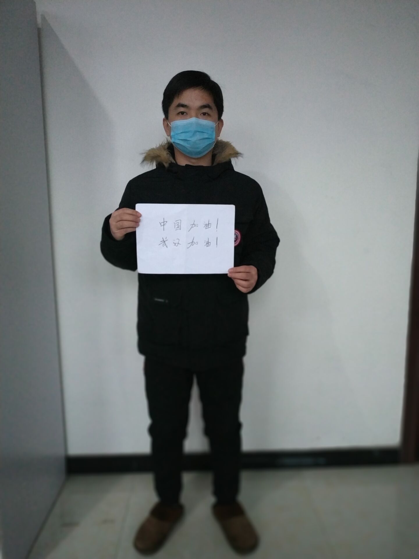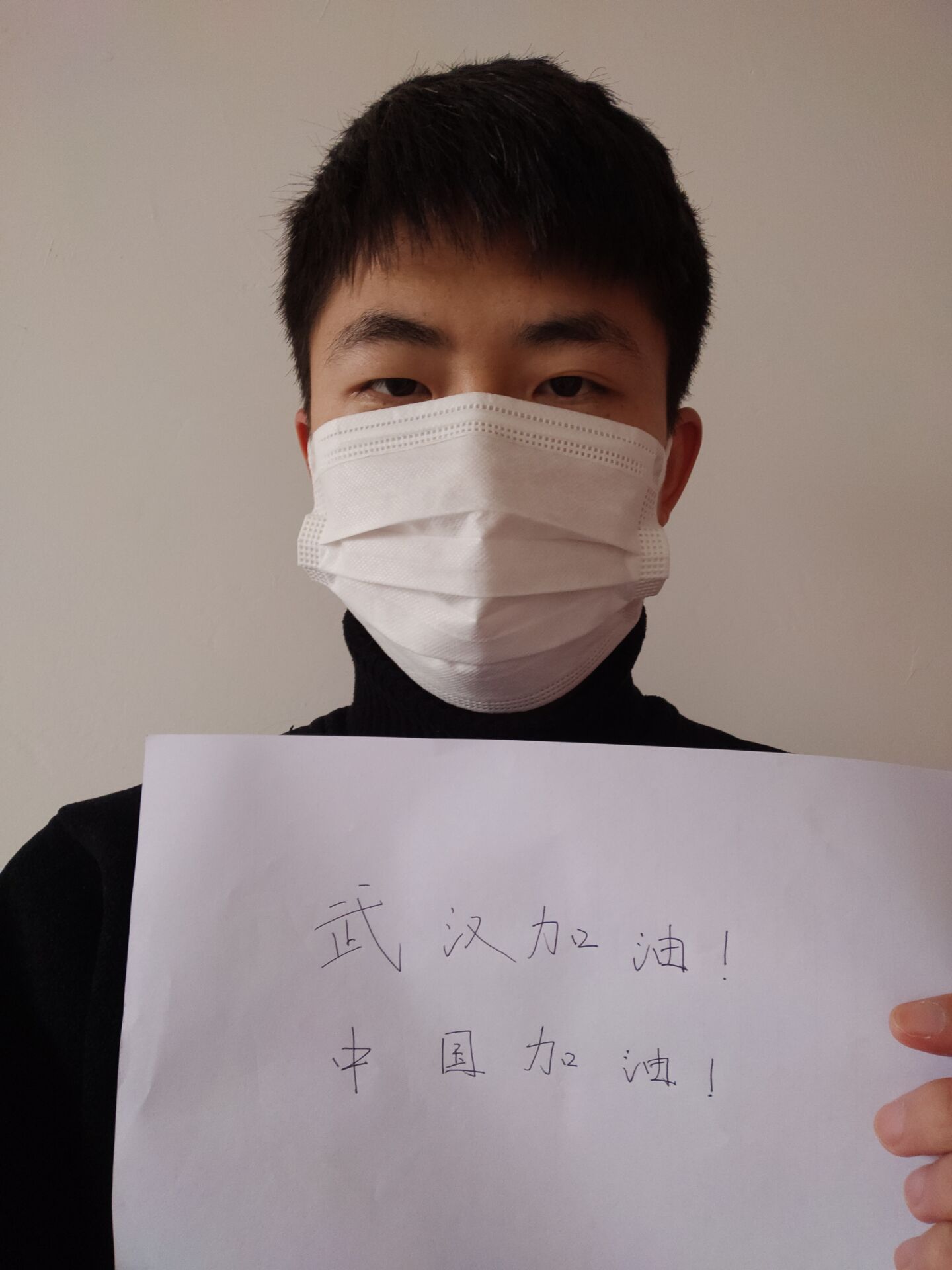 软件技术183班团支书郑金卓:我在河南南阳为武汉加油!为湖北加油!为中国加油!为所有奋斗在抗疫一线的医护人员加油,你们辛苦了!你们是最棒哒!我们能做的就是戴口罩、不聚会、少出门、勤洗手、保持室内通风,不信谣不传谣,不给国家添堵。相信我们一起努力,一定可以早日战胜疫情的!天佑中华!