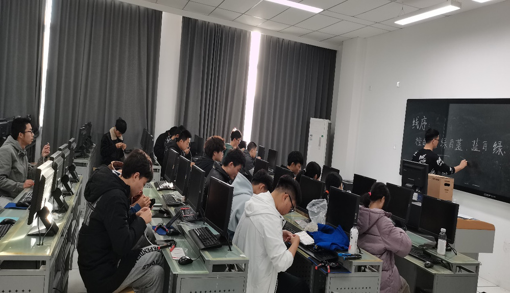 会上,社团部长先把制作网线的线序流程用文字写在黑板上,并把事先准备好的制作工具分发给新成员,然后为同学们进行详细的讲解,同学们也很认真听讲,对于不懂或者有疑惑的地方现场提问解答。制作过程中虽然出现线序错乱﹑水晶头方向错误等问题,但同学们还是做了一遍又一遍,在部长的耐心指导下,每个人都成功的制作了网线。