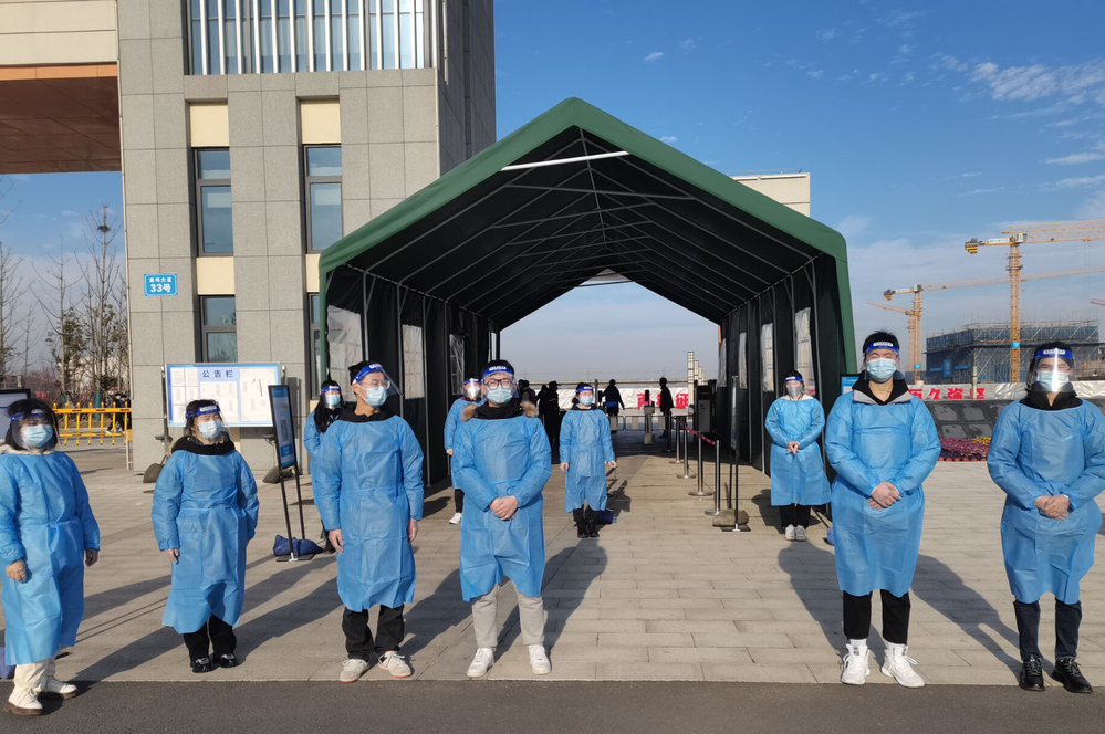 志愿者和老师们身穿蓝色防护服,面带微笑,在寒风中等候每一位学子的归来;志愿者们在校门口检查核酸报告、行程码、健康码等,贴心地帮助同学们搬运行李;各班辅导员老师去每个宿舍看望每一位报到的学生。宿舍楼,宿管阿姨们早早的将宿舍楼道打扫的干干净净,让每一位离开家的学子再次感受到了家的温暖。