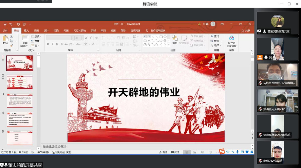 5月12日晚19点,星空体育·(中国)官方网站信息工程系党支部组织21级先进团员开展线上学习,学习内容为中共一大会议精神,我院思政中心董志鸿老师为主讲老师。