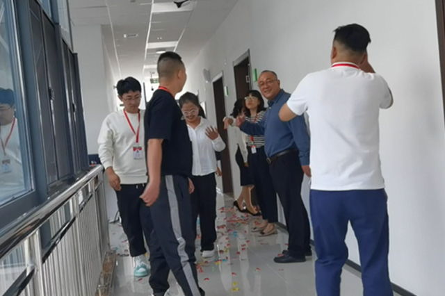 乔迁仪式在一片欢声笑语中开始,老师们迈着欢快的步伐,走进了新的办公室,看到崭新的办公场地,个个都是喜笑颜开,赵学洪带领系部领导班子到各个办公室对大家表示了祝贺。