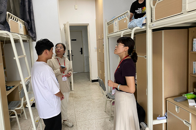 在巡查过程中,王主任和胡书记带领辅导员团队逐一走访了信息工程系所有学生宿舍,详细记录下了每一间宿舍的实际情况。他们不仅关注了宿舍的整洁度,如地面是否干净、床铺是否整齐、个人物品是否摆放有序等,还深入检查了宿舍的用电安全、消防安全等关键领域,确保不留任何安全隐患。