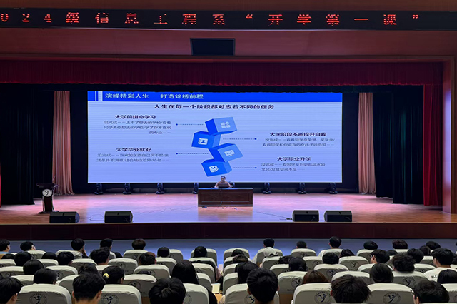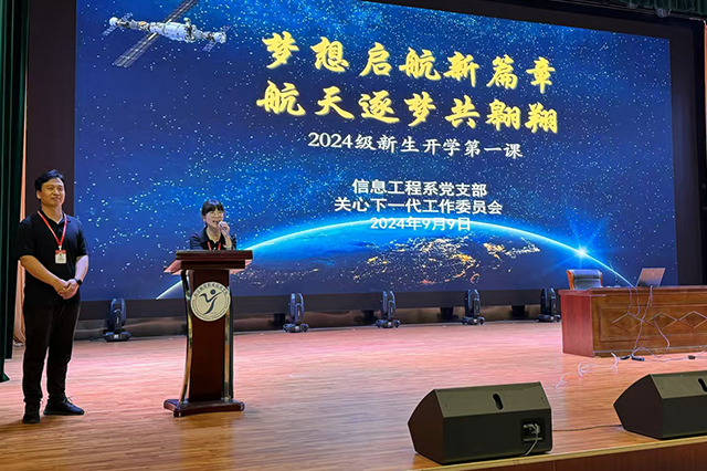 金秋九月,信息工程系迎来了新一届的莘莘学子,共同开启了探索科技奥秘、逐梦星辰大海的新篇章。9月9日,信息工程系在青春剧场举办新生开学第一课,信息工程系主任王国珍、党支部书记胡枫、学工干事、关心下一代工作委员会秘书长郝麒、全体新生辅导员以及24级新生共同参加,同时本次大会还特别邀请了全球职业规划师暖阳老师、反诈宣讲团徐柯老师为大一新生开展新生开学第一课。