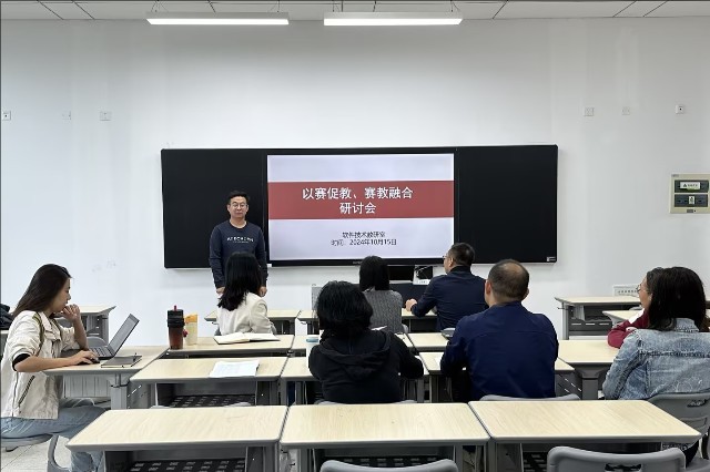 10月15日下午,信息工程系软件教研室召开了一场以“以赛促教,赛教融合”为主题的研讨会,此次研讨会旨在探讨如何通过技能竞赛促进教学质量的提升,实现竞赛与教学的深度融合,进一步推动软件技术专业教育教学改革。研讨会由软件教研室孟威老师主持,会上,教师们围绕“以赛促教”的理念,就如何将竞赛元素融入日常教学、如何通过竞赛提升学生的实践能力和创新能力、以及如何在竞赛中培养学生的团队合作精神等问题展开了深入讨论。