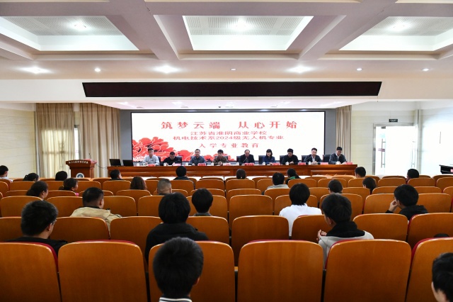 随后,无人机领域的专家陈大伟先生为全体学生和家长带来了无人机操控与维护专业的精彩介绍。他围绕无人机行业的快速发展、专业知识体系的搭建、专业技能认证的必要性以及市场对无人机专业人才的迫切需求这四个维度,详细说明了3+3项目下,学生们在江苏省淮阴商业学校前三年的具体学习规划与实施情况。