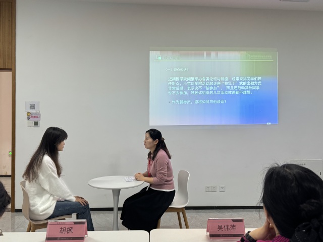 大赛流程紧凑而充实,主要包含带班情况介绍、谈心谈话等环节。在带班情况介绍环节,辅导员们详细介绍了自己所带班级的基本情况、学风建设、日常管理等方面的成效,展现了辅导员对班级管理和学生发展的深入了解与独到见解。谈心谈话环节则通过模拟与学生进行谈话的方式,考察了辅导员的教育引导能力、解决学生困惑和实际问题的能力。在案例分析环节,辅导员们针对提供的学生工作案例进行了深入分析,提出了切实可行的解决方案,并阐述了其可行性和有效性。