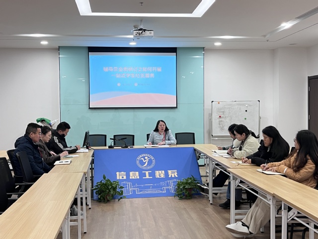2月20日,信息工程系在弘毅楼602开展以“如何开展‘一站式’学生社区服务”为主题的辅导员业务研讨会。本次研讨会由信息工程系党支部副书记陈雪主持,全体辅导员参加。此次研讨会旨在提升辅导员业务能力,探索创新学生工作模式,为学生提供更优质的教育管理与服务。
