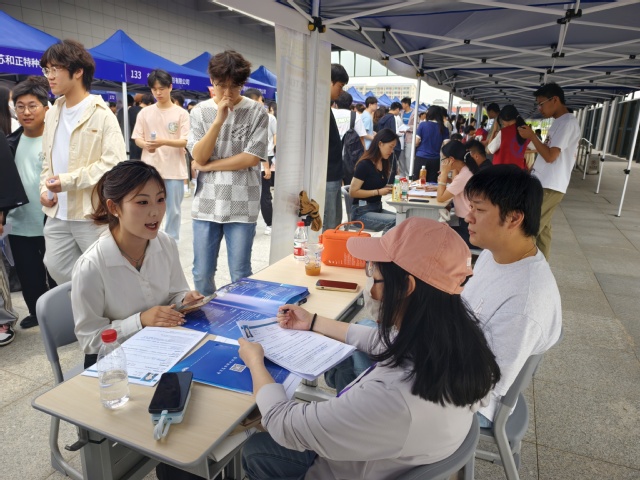 5月18日面试当天,现场气氛热烈而紧张。在各个面试企业展位前,同学们早早到达,有序排队等待。面试过程中,同学们充分展示出自己的风采。在自我介绍环节,大家自信满满,用清晰流畅的语言讲述自己的兴趣爱好、特长技能、过往经历以及对所申请岗位的理解和期待。有的同学分享了在中学时期组织社团活动的经验,如何克服困难并取得良好效果;有的同学则强调自己在学科竞赛中培养的团队协作和问题解决能力。